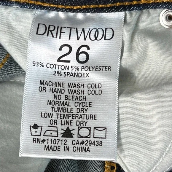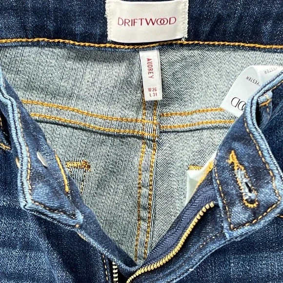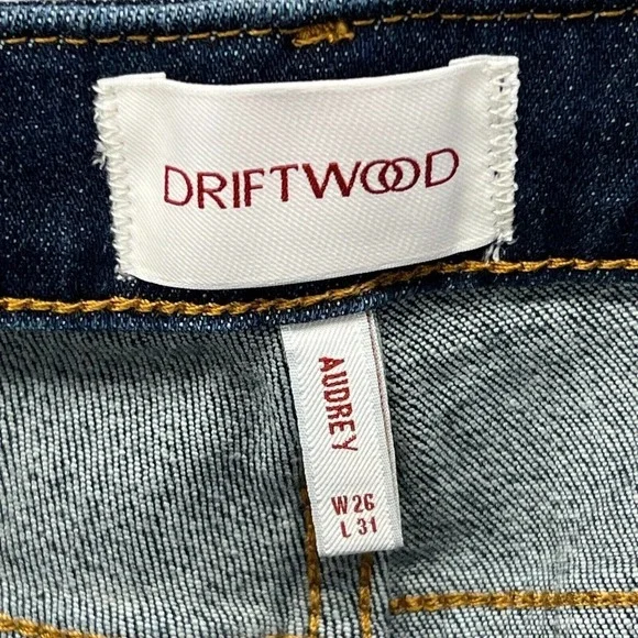Driftwood Audrey 26 High Rise Classic Stretch Straight Leg Closet Staple Dark Blue JeansSz: 26Style: Audrey Straight Let Classic 5 Pocket JeanClosure: Zip ButtonWash/Color: Dark BlueMaterial:•93% Cotton•5% Polyester•2% SpandexMeasurements:•Waist - 13"•Rise - 10"•Inseam - 31"•Length - 40"•Ankle Opening - 6.5"All measurements are taken while garment is laying flat and are approximate.Condition: Pre-owned. Excellent Used Condition - Please see description and photos.Thank you for shopping with Kind Is Beautiful!VB105