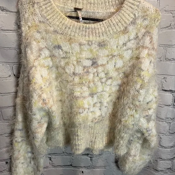 Lost Star ComboSize SJust as effortless as it is essential, this timeless pullover sweater is featured in a fuzzy, stretch knit fabrication with floral detailing at front and striping at back for added dimension.Classic relaxed fitRibbed hemlinesSide slits at bottomLength 18.5”Bust 43.5”NWOTCotton/Acrylic/Polyamide/Polyester