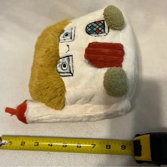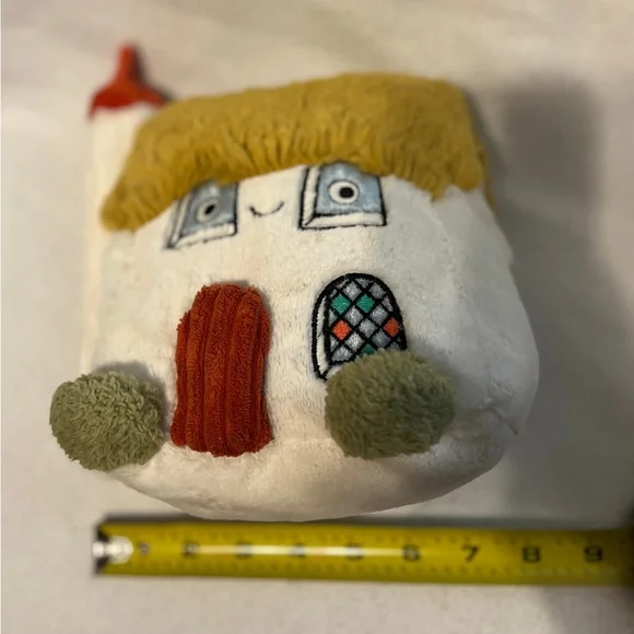 This delightful Jellycat stuffed animal features a whimsical design with vibrant red and gold accents. Its soft, plush texture makes it perfect for cuddling and imaginative play. The charming details and high-quality craftsmanship ensure it will be a beloved companion.Retired Jellycat Bonny Cottage Activity Toy Soft Rattle Crinkle Plush House Q9Good used condition.No holes or rips.Normal wear.Thanks so much for considering to purchase.