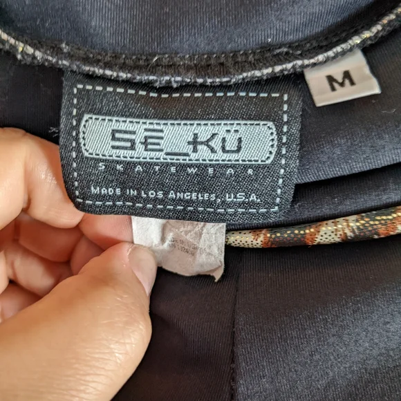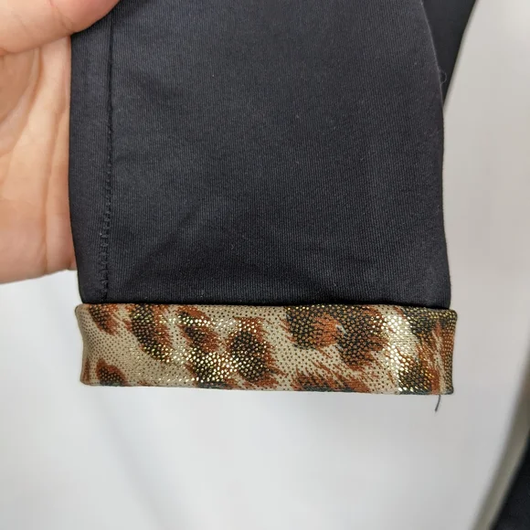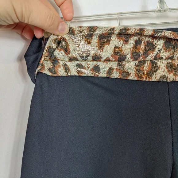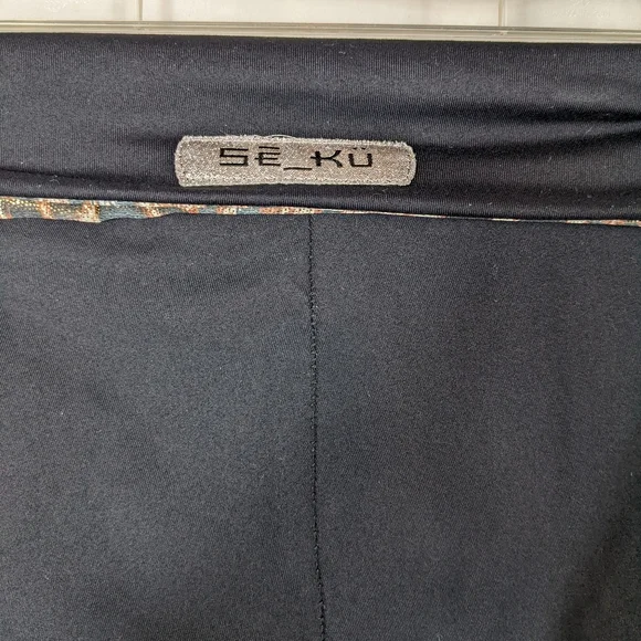 Se_Ku Seku Se Ku Skatewear Ice Skating Leggings Pants Costume Black Leopard Print Sz MIce skating leggings in great pre-owned condition with no visible flaws. Leopard print detail on the bottoms of the legs and at the waist. Size medium, but the additional details tag is worn from washing/wear.Approximate Measurements:Waist: 26"Length: 39"Inseam: 34"Occasional signs of normal wear may be present; please review photos. Wrinkles may appear from storage and shipping.